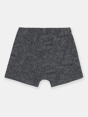 Трусы-боксеры из набивного полотна. Верхние и нижние срезы обработаны плоским швом вподгибку. По верху одновременно проложена резинка. Швы притачивания вставки и ластовицы спереди оформлены декоративной строчкой с застилом в цвет полотна. Посередине верхнего края переда настрочена декоративная этикетка.