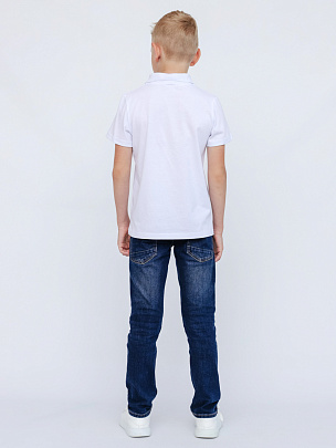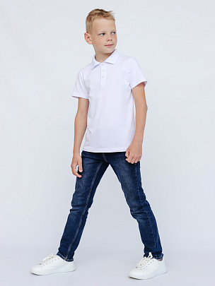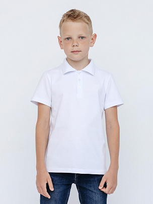 Рубашка-поло для мальчика. Модель с короткими рукавами и отложным воротником. Спереди застежка на пуговицы. На полочке декоративная вышивка.