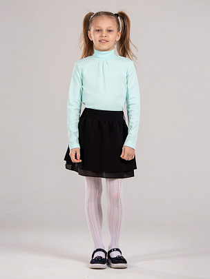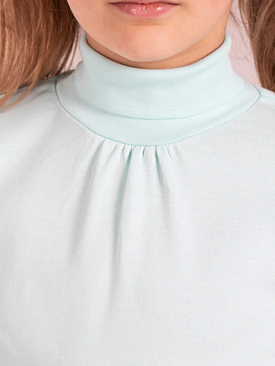 Водолазка с длинными рукавами и высоким воротником "стойкой" с отворотом. Воротник выполнен из полотна с эластаном.