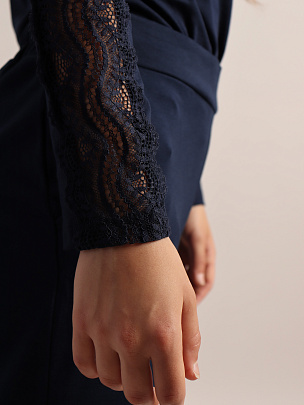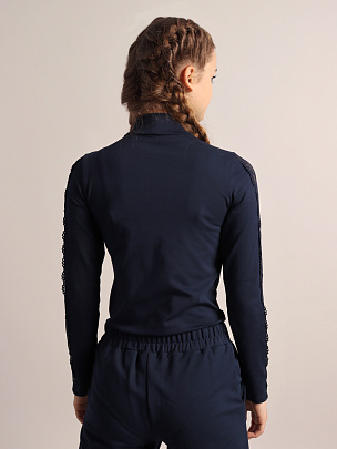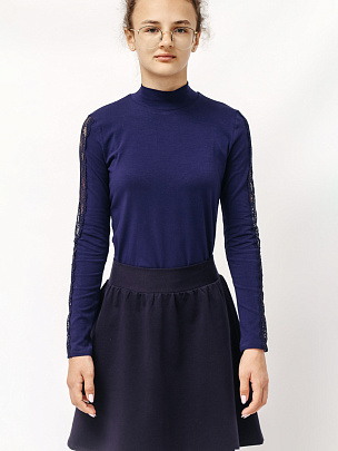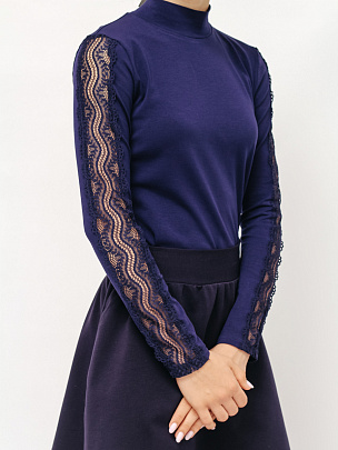 Водолазка для девочки с длинными рукавами и воротником-стойкой. Рукава со вставками из эластичного кружева.