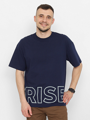 Футболка мужская свободного покроя с короткими втачными рукавами. Горловина круглая, обработана воротником из полотна с эластаном. Перед футболки декорирован принтом "ВОЗВЫШАТЬСЯ".
